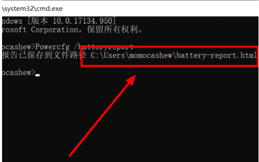 3、回车之后,下方会出现“电池使用报告保存在xxx”的字样。