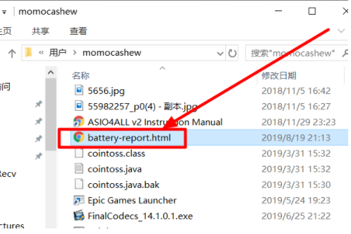 4、打开刚才出现的保存路径,找到“battery-report”文件双击打开。