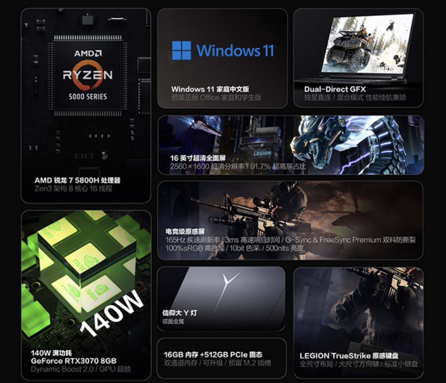 锐龙 7 5800H + RTX 3070 的组合毫不过时,140W 的 GPU 满血性能释放,足以在 2K 分辨率下流畅运行所有你能用到的专业软件和 3A 大作,5 热管双风扇的霜刃 Pro 散热系统在面对高负载环境时更加从容。