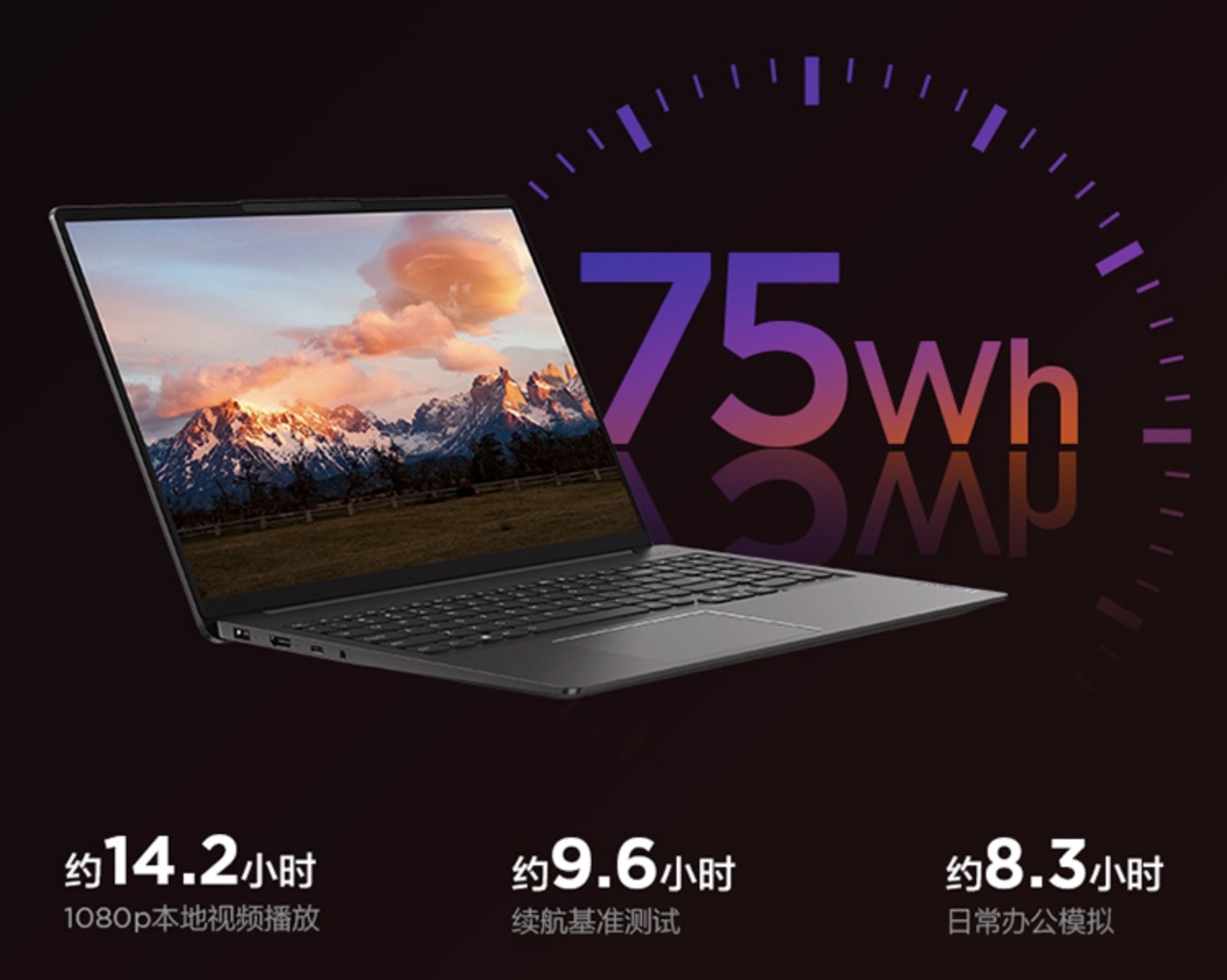 小新 Pro16 锐龙版还配备了 75Wh 大电池和 135W 的电源适配器,拥有 9.6 小时的超长续航,告别续航焦虑。