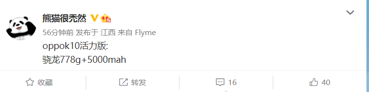 据微博博主 @熊猫很禿然 称,OPPO K10 活力版手机将搭载骁龙 778G 芯片,内置 5000mAh 电池。