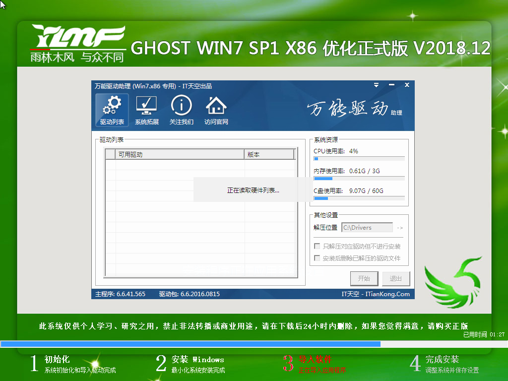 提示一:在执行安装前要把360等杀毒软件关闭,否则无法正常安装。(若360杀毒软件开启,会提示有毒,下载的Ghost Win7系统镜像的软件都是安全无毒的,用户可放心使用。)