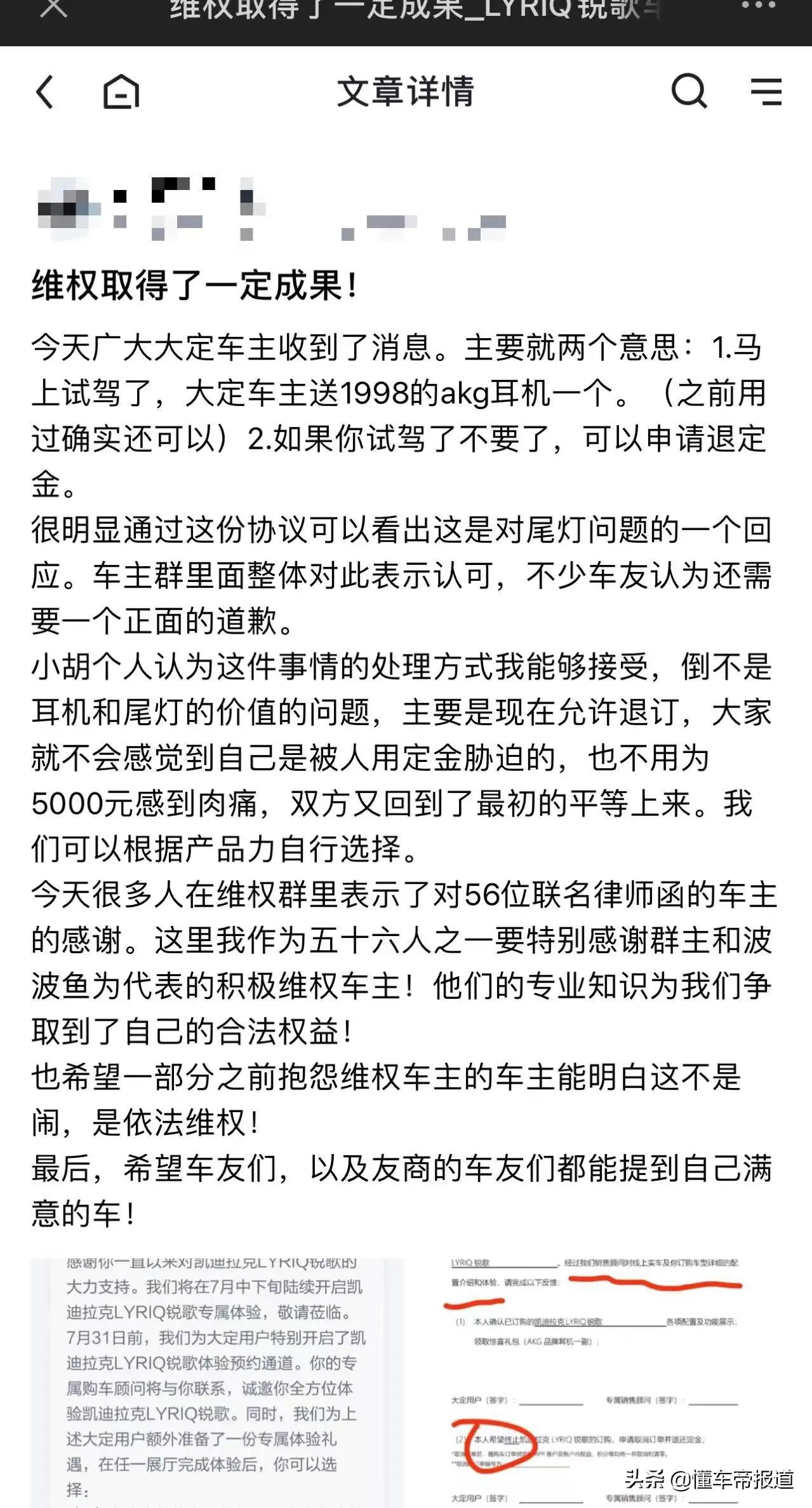 针对“虚假宣传”一事,凯迪拉克 LYRIQ 锐歌大定车主表示厂家并没有提前告知,同时在发现这一问题后,将各个传播渠道删除了此前的宣传内容,并在官方 App 上提前一个月将大定用户的订单锁定,因此向上汽通用发送律师函。