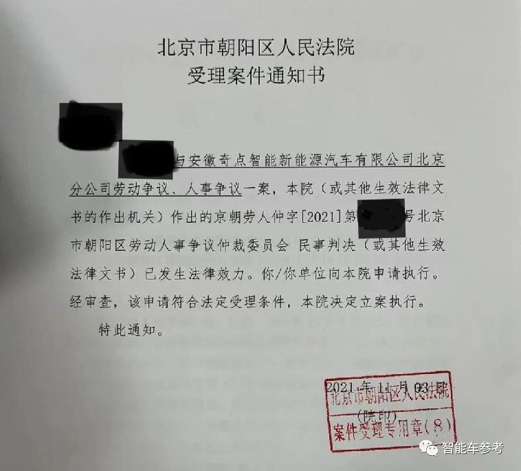 最近,一份劳动仲裁案的受理通知在网上流出,揭开了奇点汽车昔日明星新势力的现状: