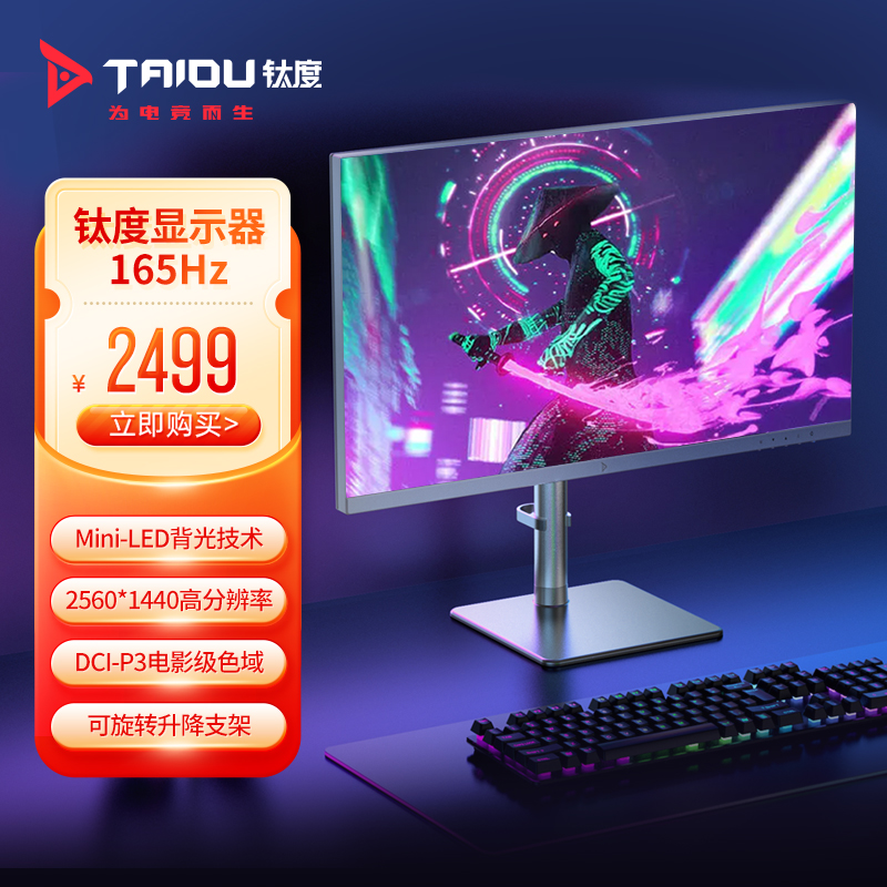 厂商钛度推出低价 MiniLED 显示器:2K 165Hz HDR1000,2499 元
