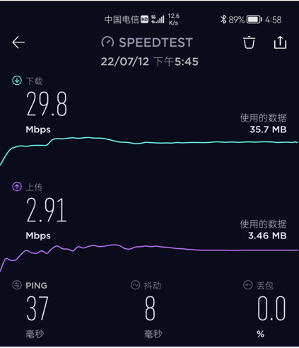 ▲ 82 公里终端(Mate40 Pro)Speedtest 测试结果
