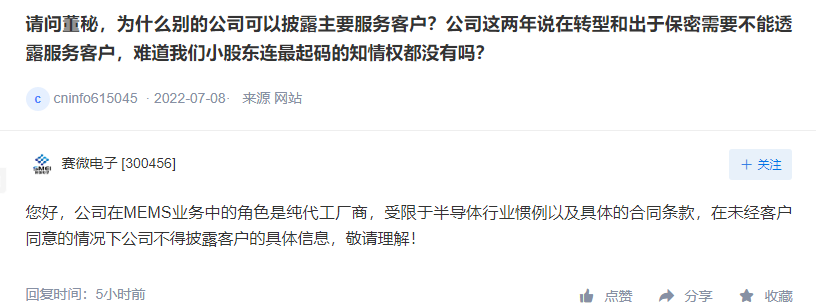 小编了解到,2016 年该公司耗资 7.5 亿元全资收购瑞典 Silex, 该公司为全球 MEMS 代工龙头,拥有 100 余项国际 MEMS 核心专利,收购后 MEMS 业务营收占该公司总营业收入的 74.54%,2019 年公司 MEMS 晶圆代工排名跃居全球第一。