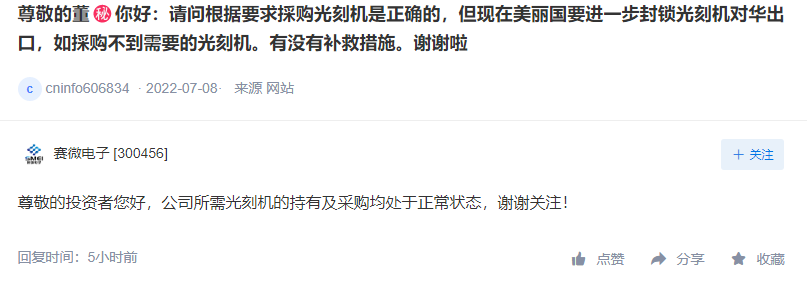 赛微电子:公司所需光刻机的持有及采购均处于正常状态