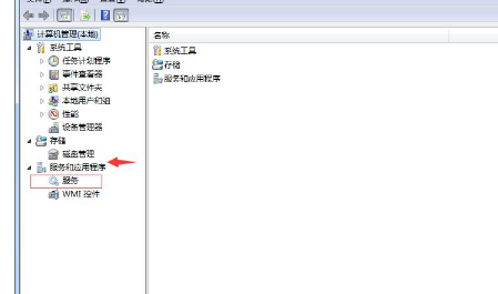 2、然后在管理页面下方点击打开“服务和应用程序”的详细菜单选择其中的“服务”选项。如图所示;