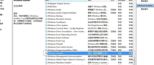 3、接下来在服务页面下方找到“windows installer”服务选项,双击该选项。如图所示;