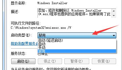 4、最后打开它的属性设置,随后我们点开“启动类型”,选择其中的“禁用”,点击应用即可,如下图所示。
