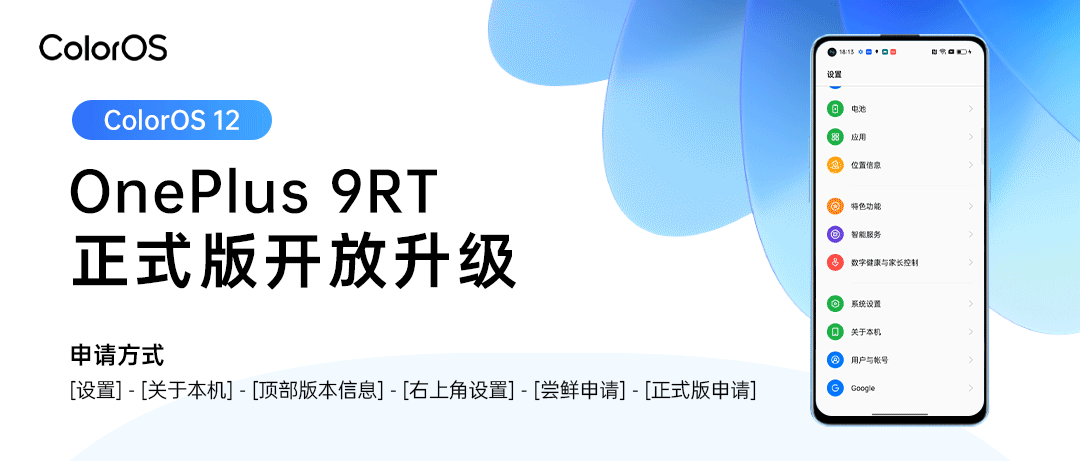 一加 9RT 5G 开放 ColorOS 12 × Android 12 正式版升级