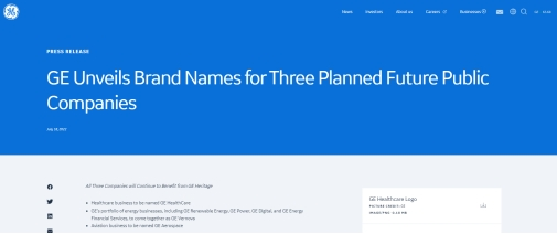 集微网消息,7 月 19 日消息,据 GE 中国官微消息,通用电气(GE)近日发布了其计划通过分拆组建的三家投资级上市公司的全新品牌标识。这三家公司将分别聚焦医疗、能源和航空三大增长型行业板块。