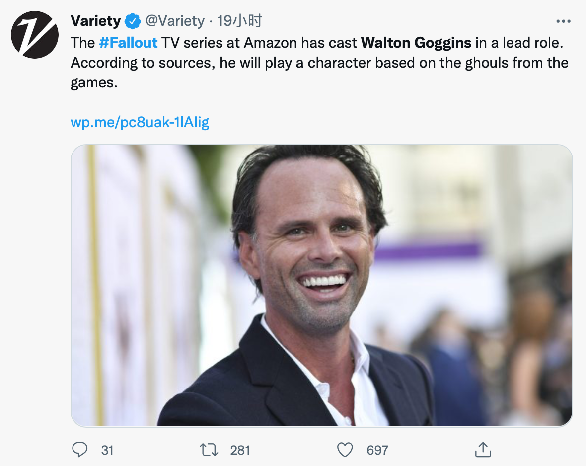 小编 7 月 20 日消息,演员 Walton Goggins 在 Instagram 确认,亚马逊《辐射》的拍摄已经开始,他将扮演一名尸鬼。