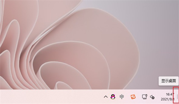 在win11中显示桌面按钮变成了很细的一条线,而且不是靠边放置的。