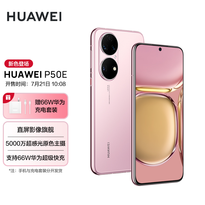 小编 7 月 21 日消息,华为 P50E 于今年 3 月发布,搭载 HarmonyOS 2 系统,全新拂晓粉配色将于今日上午 10:08 正式开售,售价 4088 元起。