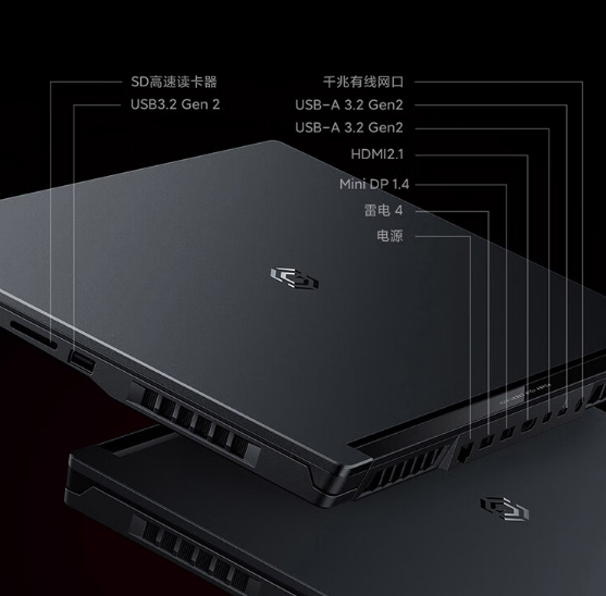 接口方面,Redmi G 2022 游戏本提供 SD 高速读卡器、干兆有线网口、USB3.2 Gen 2、两个 USB-A 3.2 Gen2、HDMI 2.1、Mini DP 1.4、雷电 4 接口。