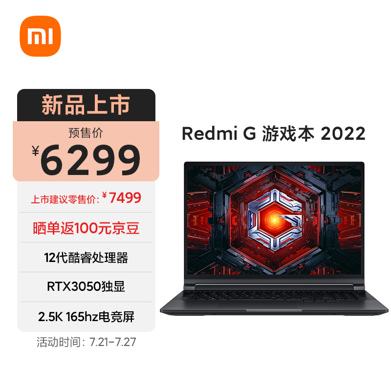 小编 7 月 21 日消息,Redmi G 2022 游戏本今天开启预售,采用 2.5K 165Hz 电竞屏,首发价 6299 元起,7 月 27 日 0 点全渠道开售。