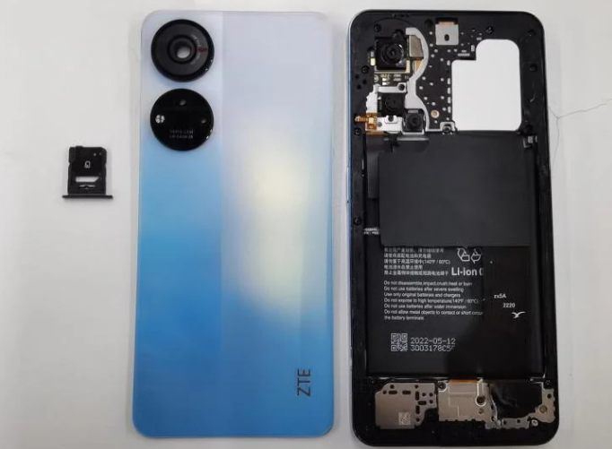 泄露的图片显示,中兴 Axon 40 SE 采用窄边框直屏设计,配备屏下前摄,不过图片显示该机屏下前摄较为显眼。机身采用直角中框设计,预计为塑料材质。该机背面设计别具一格,背壳采用拼接设计,少部分为亮面,大部分为磨砂质感。后摄模组为两个分隔开的圆形,其中上方圆形模组为单颗主摄镜头,拆机图片显示该机配备大底主摄。下方圆形模组则有两颗镜头以及闪光灯。机身右下角为中兴“ZTE”标识。