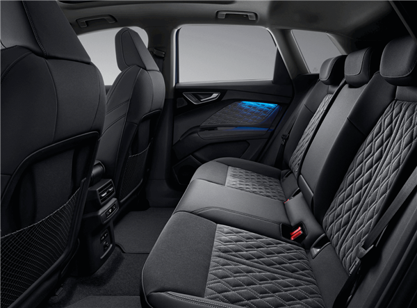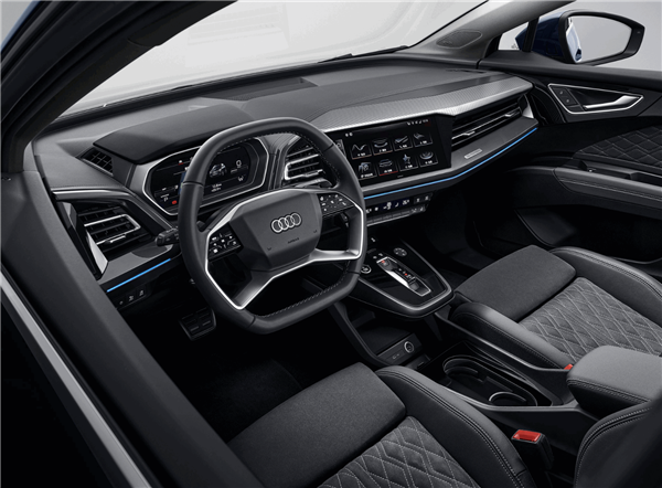 内饰方面,奥迪 Q4 e-tron“科幻星舰”座舱以驾驶员为中心,拥有 10.25 英寸的奥迪虚拟座舱增强版、11.6 英寸 MMI 触摸屏、双平底多功能真皮运动方向盘等,此外还拥有 A8L Horch 同款的门板豪华珩缝工艺、30*30 炫彩环境氛围灯、SONOS 豪华音响系统等配置。