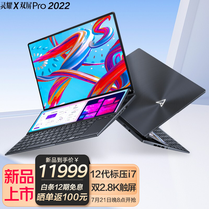 华硕灵耀 X 双屏 Pro 2022 今晚开卖:i9 + RTX 3050 Ti,双 120Hz 屏