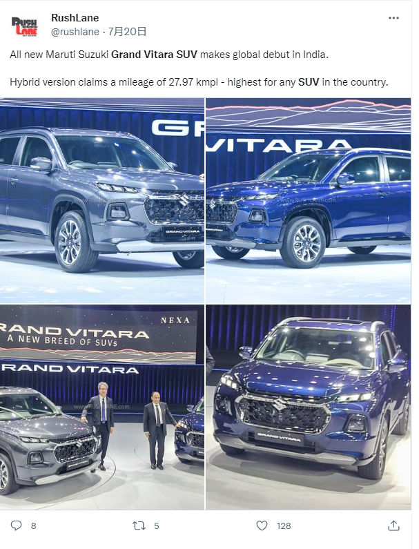 此前,马鲁蒂铃木在印度发布了首款动力强劲的混合动力汽车 Grand Vitara SUV,这款车型或可帮助该公司夺回被现代汽车和起亚汽车等竞争对手抢走的印度市场份额。