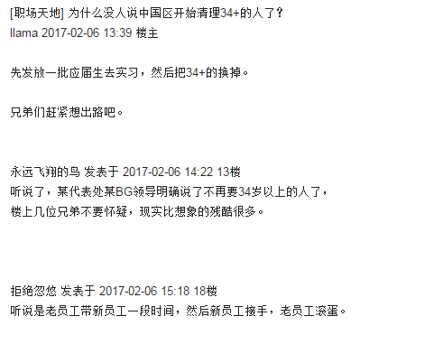 小编了解到,2017 年时,网上流传华为要清理 34 岁以上老员工的消息,传言称华为中国区开始集中清理 34 岁以上的交付工程维护人员,而研发则是开始集中清退 40 岁以上的老员工,主要针对程序员。当时,华为官方表示该消息纯属谣言。