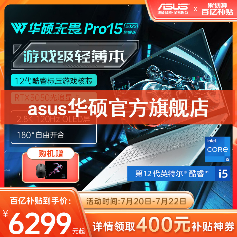 天猫华硕无畏Pro15 2022 轻薄笔记本电脑券后 6299 元领 400 元券