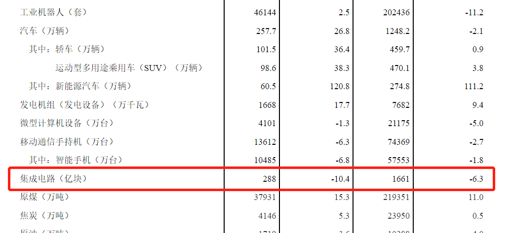 虽然,集成电路产量略有下滑,但出口量却增长了 16.4%。