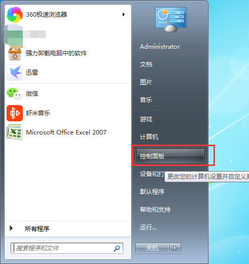 1、打开控制面板