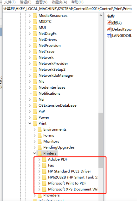 进入HKEY_LOCAL_MACHINESYSTEMControlSet001ControlPrintPrinters,然后删除Printers目录下所有文件,删除后在本地服务设置中启动Print Spooler服务。