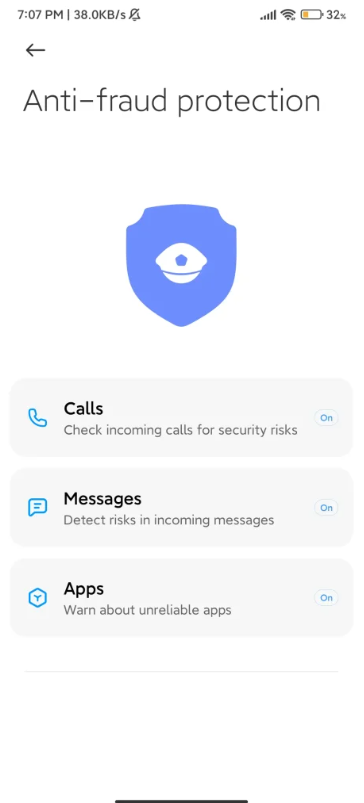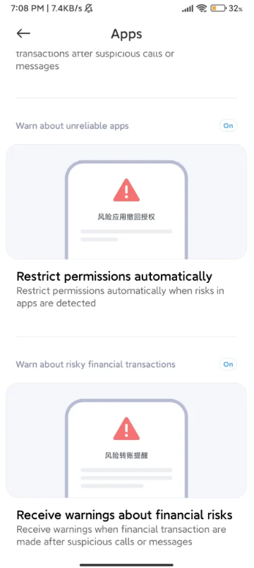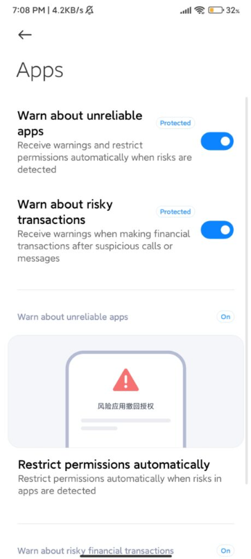 MIUI 反欺诈保护: