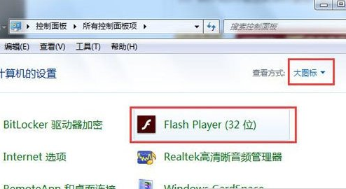 2、在新界面右侧选择大图标,之后选择【flash player(32位)】。