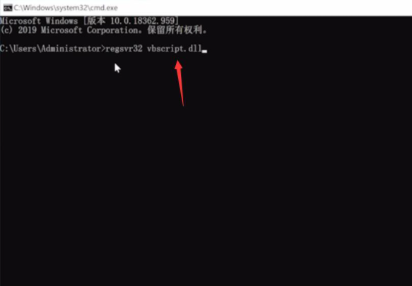 第二步、弹出命令窗口,输入regsvr32 vbscript.dll,回车;
