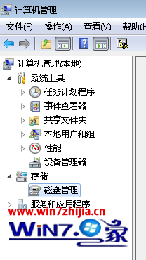 1、鼠标右击计算机选择“管理”选项,在打开的管理界面中,选择“磁盘管理”项;