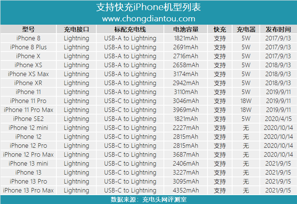 “五福一安”是国内网友对苹果长期以来在快充上不思进取的幽默调侃,事实上,从iPhone 4开始到iPhone 11,苹果附赠的都是这样一款5V/1A充电头,只有iPhone 11 Pro机型才是18W。