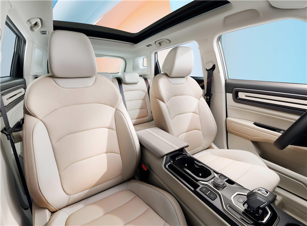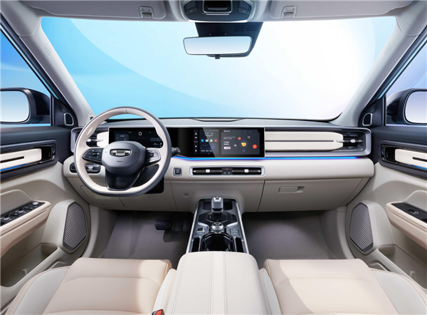 内饰部分新车进行了不小的升级,车内使用大量软质材料包裹,采用10.25英寸全液晶仪表盘与12.3英寸中控屏相连接的双联屏设计,车机系统配备FACE CONNECT人脸识别智启系统、全新一代银河OS智能车机、540度全景影像系统带底盘透视功能、DTS沉浸式影院音场。