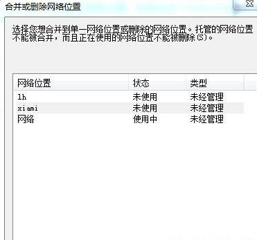 2、在【设置网络属性】界面的左下角找到【合并或删除网络位置】,双击打开。