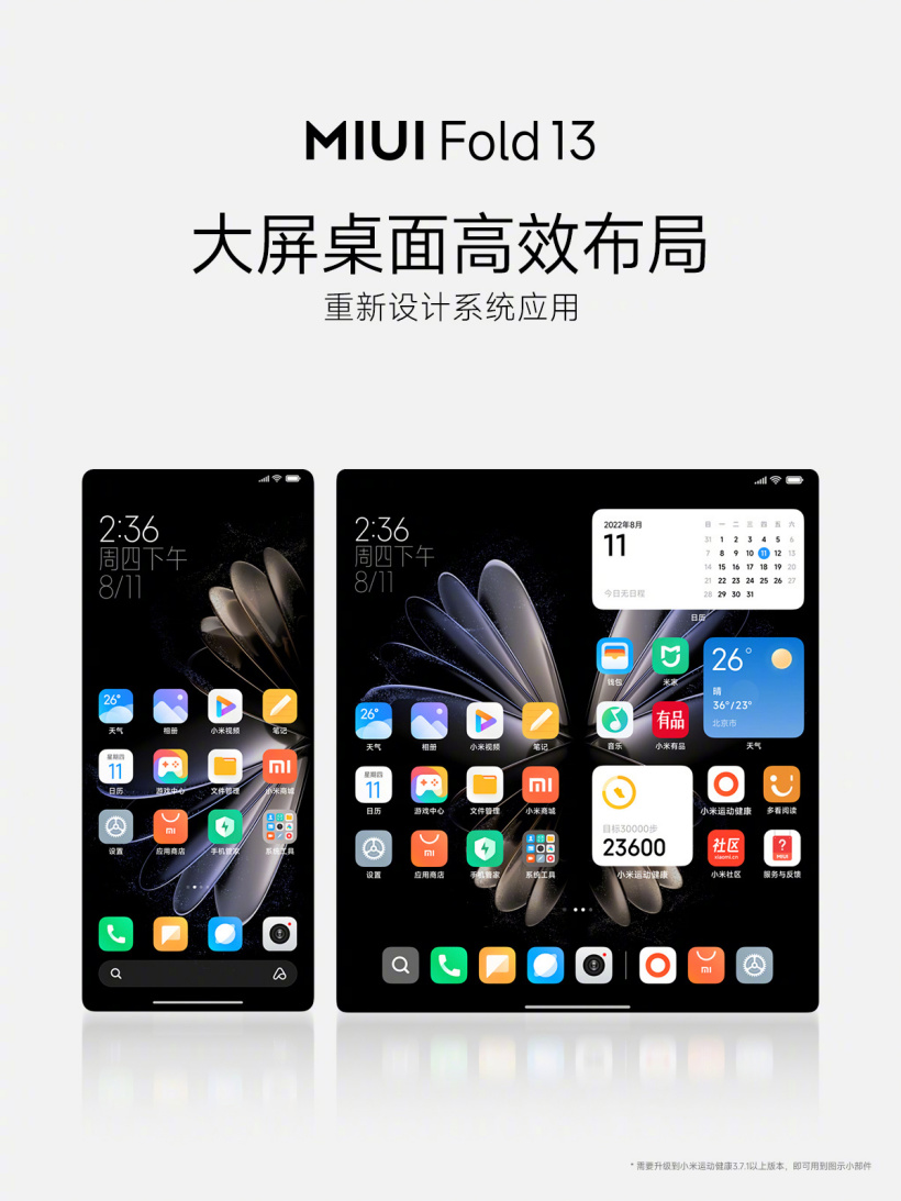 其他方面,小米 MIX Fold 2 采用了 4500mAh 双电池,支持 67W 快充,40 分钟可充电 100%,厚 5.4mm / 11.2mm,重 262g,有月影黑、星耀金 2 款配色,配双扬声器,支持哈曼卡顿调音、杜比全景声 + Hi-Res 双认证,配备线性马达,预装适配大屏的 MIUI Fold 13 系统(基于 Android 12L),兼容 5000 款应用。