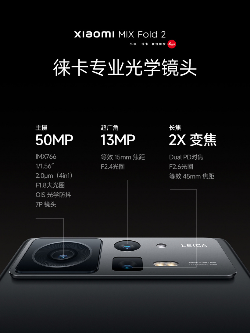 小米 MIX Fold 2 今日首销:骁龙 8+、自研微水滴形态转轴、徕卡影像、MIUI Fold 13