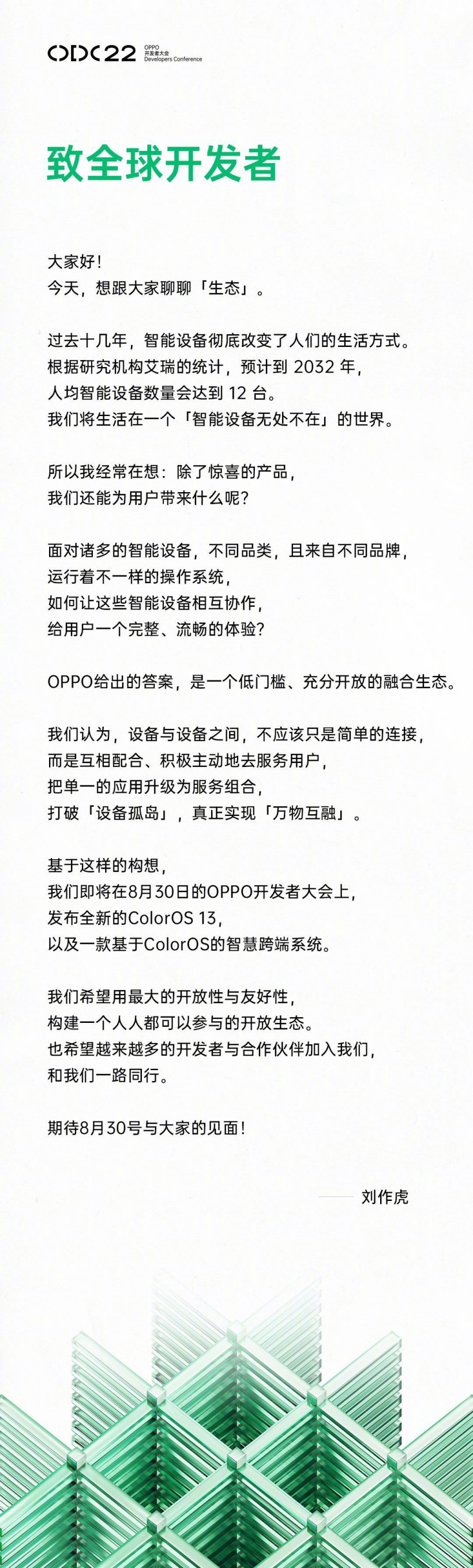2022 OPPO 开发者大会官宣 8 月 30 日召开:将发布全新 ColorOS 13 与智慧跨端系统