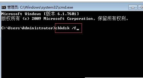 2、在新的界面中,按照下图所示输入“chkdsk/f”,按下回车。