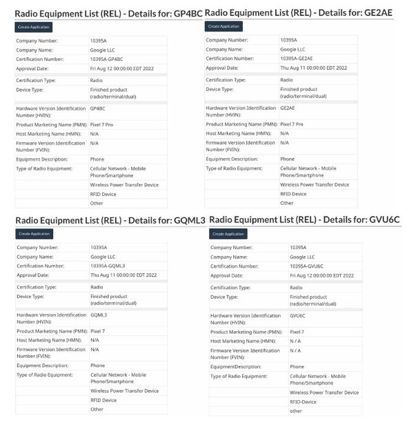 据此前爆料显示,全新的谷歌Pixel 7系列将继续于10月份与大家见面,将依旧将包含谷歌Pixel 7和谷歌Pixel 7 Pro两个版本,其最大的卖点除了全新升级的影像系统以及有望出厂预装的Android 13操作系统外,第二代自研Tensor芯片也是外界关注的焦点。而现在有最新消息,近日有海外爆料达人透露,该机已出现在了加拿大REL射频装置清单中,其全系型号也基本得到确定。