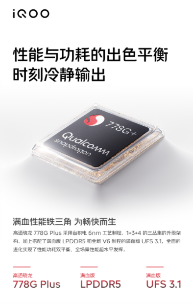 其他方面,根据此前曝光的消息,全新的iQOO Z6系列将包含iQOO Z6和iQOO Z6x两个版本,其中前者将主打快充,配备旗舰级的双电芯80W闪充,而后者将主打“性能续航小超人”。此外,二者均将继续采用一块高刷新率单孔护眼LCD屏,支持120Hz刷新率,拥有DCI-P3电影级色域和HDR 10 高动态范围。配置上,该机将依旧搭载中端神U的升级版——高通骁龙778G Plus芯片,性能要比上一代更强一些,但同样主打千元价位段。