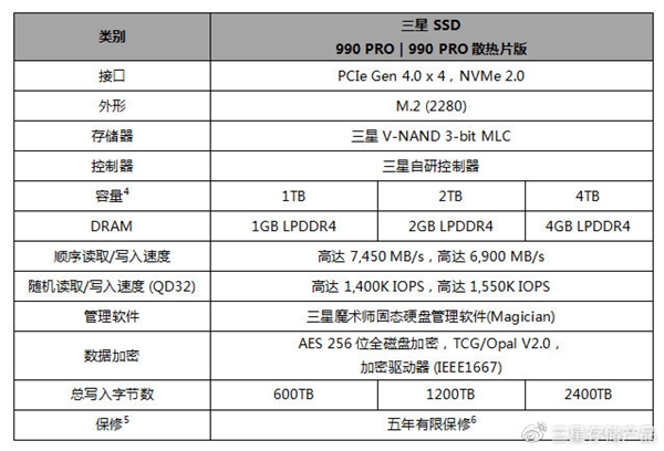 提速55%!三星发布新一代旗舰SSD 990 PRO:目前最快PCIe 4.0固态盘