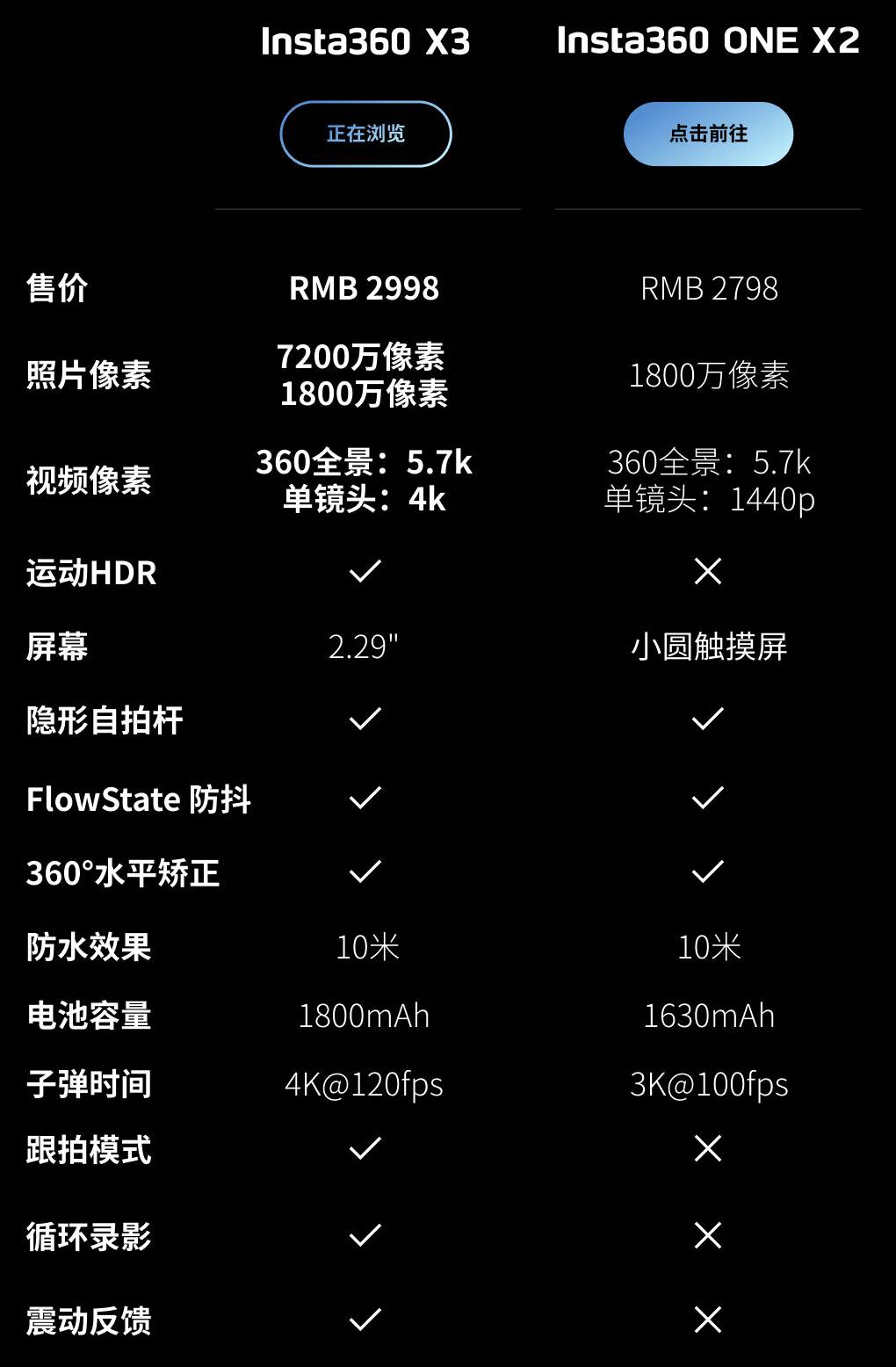 9 月 8 日消息,今天,影石 Insta360 X3 全景运动相机发布,前后各搭载 1/2 英寸 4800 万像素传感器,售价 2998 元。