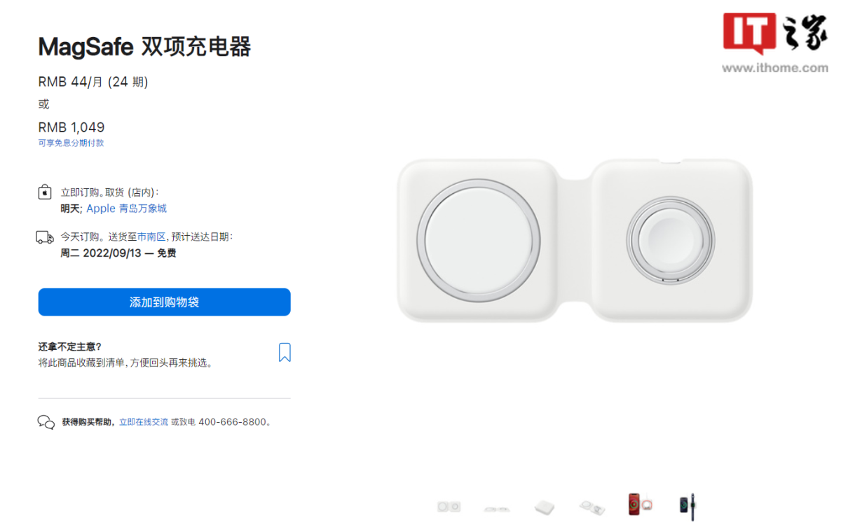 iPhone 14 发布会后,苹果官网下架并停产 649 元的 Apple Watch 磁力充电基座