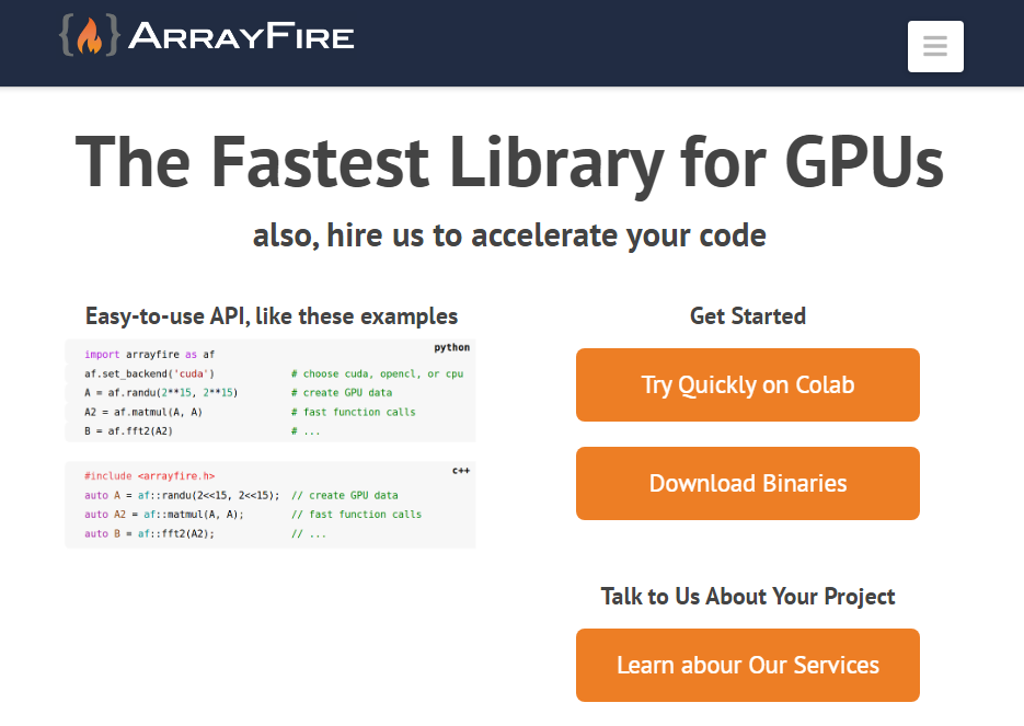 ArrayFire 此前已经得到了 DARPA 的部分资助。据报道,它已被各种国防工业客户使用。ArrayFire 已经成为一个开源库超过 5 年了,同时他们还提供 OpenCL 和 NVIDIA CUDA 咨询服务。