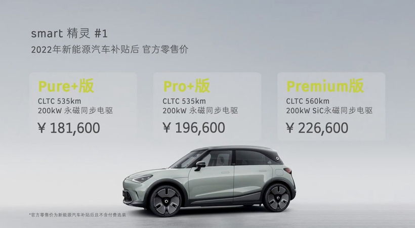 smart 精灵#1 已于今年 6 月正式上市,补贴后价为 18.16 万元起: