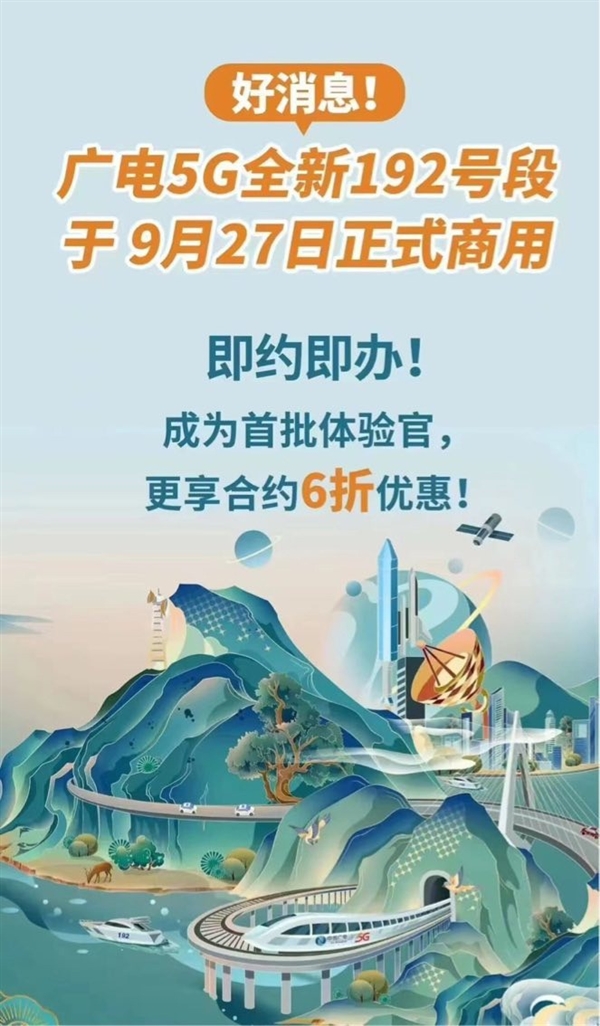 近日一份网传宣传图显示,中国广电5G将于9月27日开启正式商用,192号段也将正式登场,而首批体验官可享受合约6折的优惠。